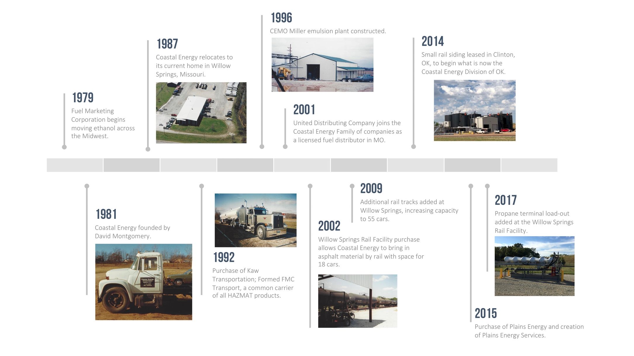 In 1977, President and CEO David Montgomery went to work for a small company called Energy Sales, then located in Cabool, Missouri. In 1981, David had the opportunity to purchase Energy Sales - both the trucking equipment and marketing arm of the company - renaming it Coastal Energy. In 1987, the company moved to its current home in Willow Springs, Missouri.
